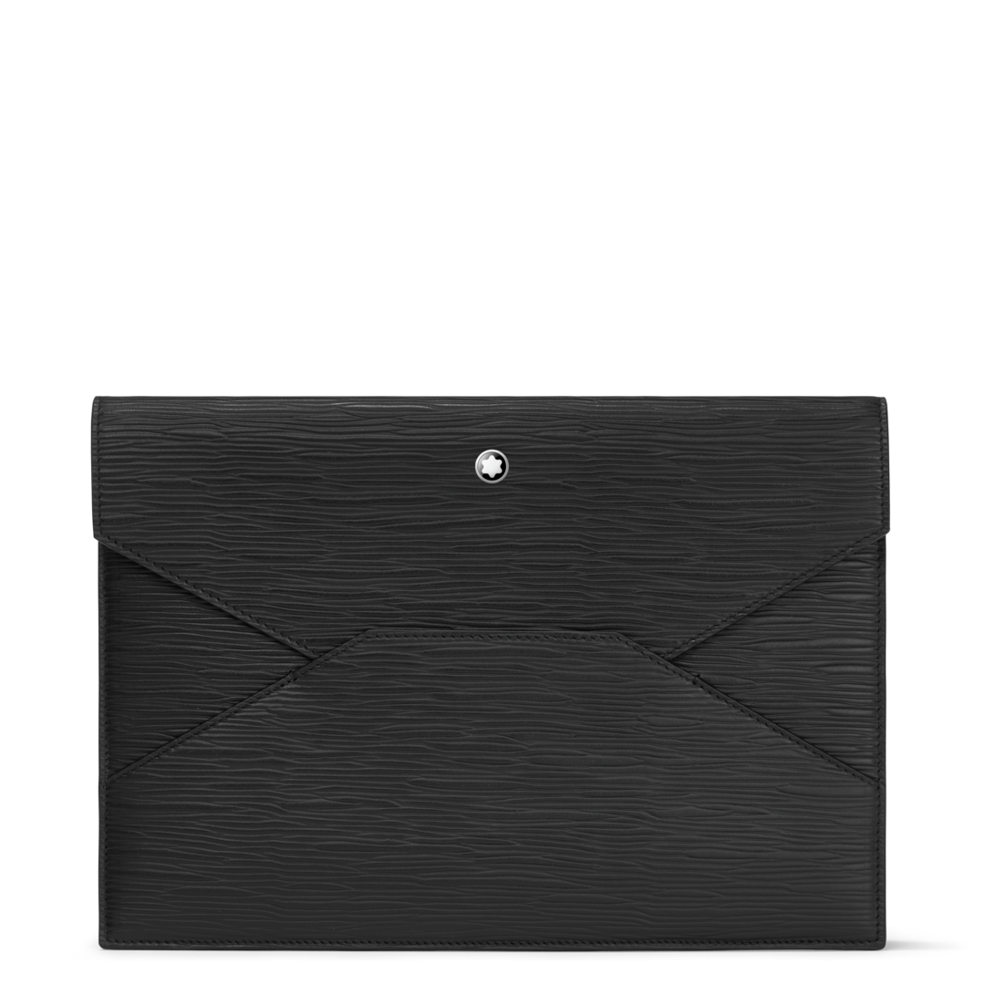 Inspired by the world of writing, this envelope-shaped pouch bag is a stylish companion to wherever your day takes you. Textured in high-quality leather, its modular design features a side band on the back that allows the pouch to be attached to larger bags, such as document cases and totes. The Montblanc emblem details the front flap in a new larger size.