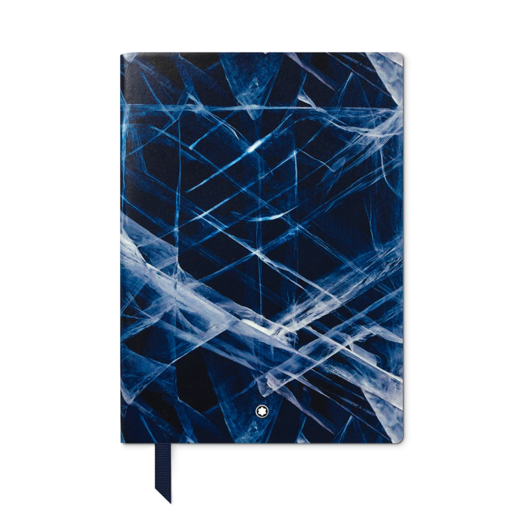 Montblanc notebook #163 medium, Montblanc Meisterstück Glacier collection, blue lined Made in Italy. 120 sheets / 240 pages. Dimensions 170 x 240 mm. The design of Montblanc Meisterstück Glacier collection notebook is inspired by ice crystals colours reflections.