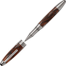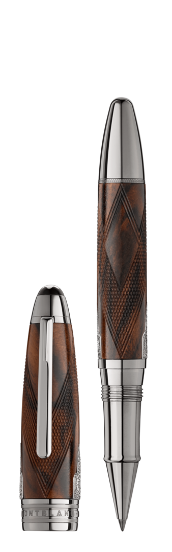 The Meisterstuck Great Masters James Purdey & Sons unites the expertise of Montblanc – as creator of exquisite writing instruments – with the exclusive Maison, crafter of fine guns and rifles for game hunting. James Purdey & Sons have been serving the world's most demanding customers in search of perfect function, beauty, exclusivity and long-lasting quality. The wood-carving and metal-engraving crafts of the James Purdey Maison are unique, secret and extraordinary. The Meisterstück Rollerball is made of caucasian walnut wood with engraved Purdey checkering and casted metal inlay, and features ruthenium-coated fittings.