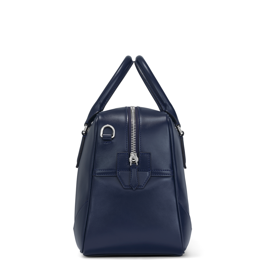 The perfect companion for a day out, the Meisterstuck medium duffel is crafted from a new deep shine ink blue leather for a luxurious feel, inspired by Montblanc's rich writing heritage. Its roomy interior features a zippered pocket, two open pockets and a loop for your writing instrument of choice. The stitching, zipper pullers and handles recall the shape of the nib, while a detachable shoulder strap offers a stylish and hands-free alternative to carry your belongings around.
