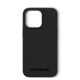 Made from black soft touch silicone with Montblanc brand name, this hard phone case is specifically designed for the Apple iPhone 13 Pro with a built-in magnet system and offers a comfortable experience while carrying or making calls. A slim phone cover with blue microfiber lining to protect your devices with style. A card wallet with 2 card slots with a built-in magnet system may be attached on the back (id. 129226). Please note that this product contains magnets. Before using it, please consult the magnet section in the Service Guide leaflet accompanying the product or the Customer Service section on the Montblanc website. If you have any concerns, please consult your health care professional.