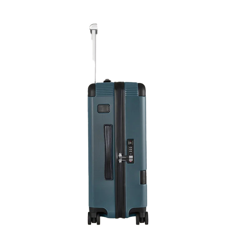 Find your travel companion in the #MY4810 collection. This user-friendly cabin trolley, crafted from lightweight polycarbonate in elegant Avio blue colour and accented with a black leather trim, features a compact design complete with a four-wheel system, an adjustable bar, and intelligently organised compartments for your convenience. It stands at 38 x 55 x 23 cm with a capacity of 37 L, usually meeting the cabin luggage criteria. Keep in mind, though, that hand and cabin luggage restrictions can differ from one airline to another, so it’s recommended to confirm the specific regulations of your airline prior to your journey.