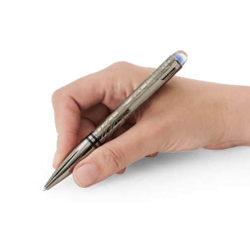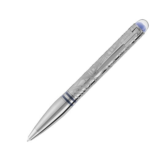 Starwalker SpaceBlue looks beyond planet earth and turns towards the stars and the galaxy. This new Starwalker collection brings a new look for the metal barrel, with a design that recalls the intricate structures of the Widmanstätten Pattern, one of nature's most hypnotic creations. All metal parts are coated in dark ruthenium, accompanied by a deep space blue subdome on the cap top, recalling the hues of a starry sky, over which the Montblanc emblem floats.