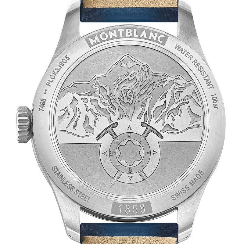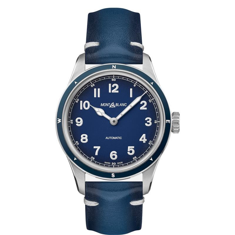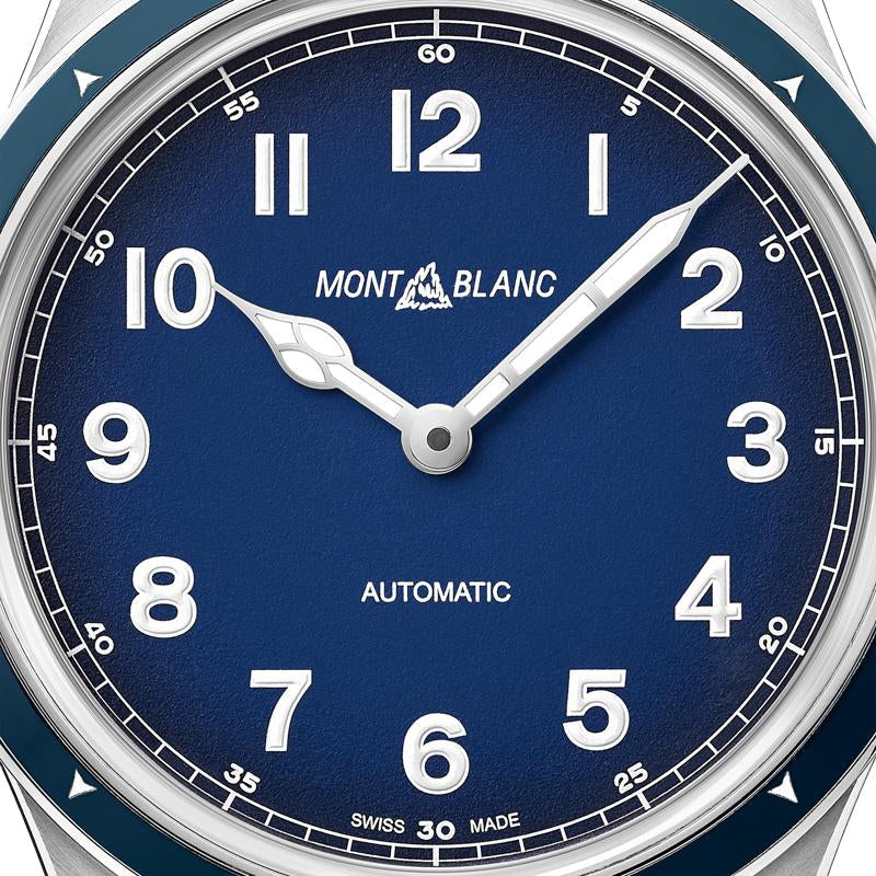 The Montblanc 1858 Automatic watch continues to impress with a handsome blue dial that contrasts perfectly against the vintage-inspired cathedral shaped hands with a “cloisonné design that has been slightly domed for a superb finish. The central hands for hours and minutes alongside the large Arabic numerals are coated in luminescent coating for optimal legibility in all lighting conditions. Housed beneath the dial is the Calibre MB 24.15 automatic winding movement which together with its 26 jewels and 28,800 vibrations per hour delivers an impress power reserve of 38 hours. To cement it’s historic-inspired design, the Montblanc 1858 watch is detailed with a fixed steel and blue ceramic bezel, a classic railway minutes track and the original 1930’s Montblanc emblem at 12 o’clock.