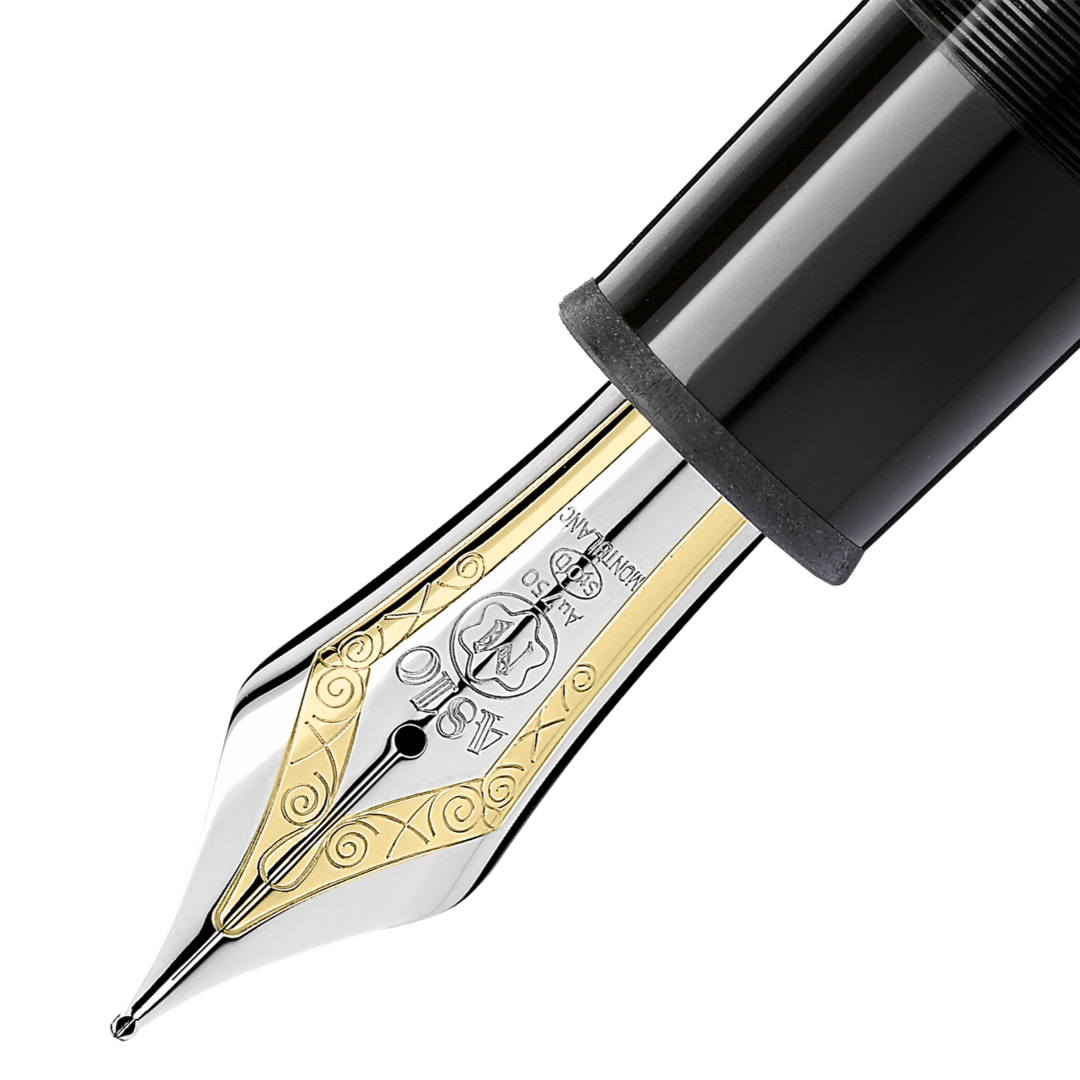 The Meisterstuck 149 - a design that writes history. Deep black precious resin with platinum-coated details, surmounted by the white star emblem and finished with a handcrafted Au 750 / 18ct gold nib, evolves into Montblancs design icon.