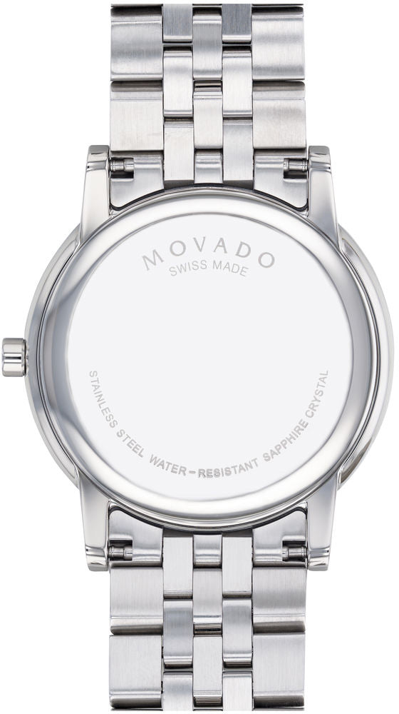 Movado Watch Museum Mens 0607201. This long, rich heritage of artistry and innovation in design, and a close, enduring association with the arts continue to define the Movado watches brand identity. Always in motion, Movado creates modern watches of exceptional craftsmanship and design distinction.