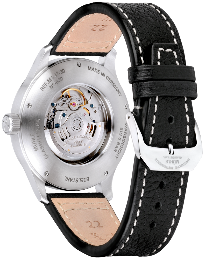 Muehle Glashuette Watch Terrasport I M1-37-34-L. The Terrasport I takes on the role of the observation watch in our collection of pilots watches. With its impressive diameter of 44 millimetres, this model's brushed stainless steel case provides room for a large face and correspondingly expansive minute graduation in which the position of the red second hand can be read in increments of one second.