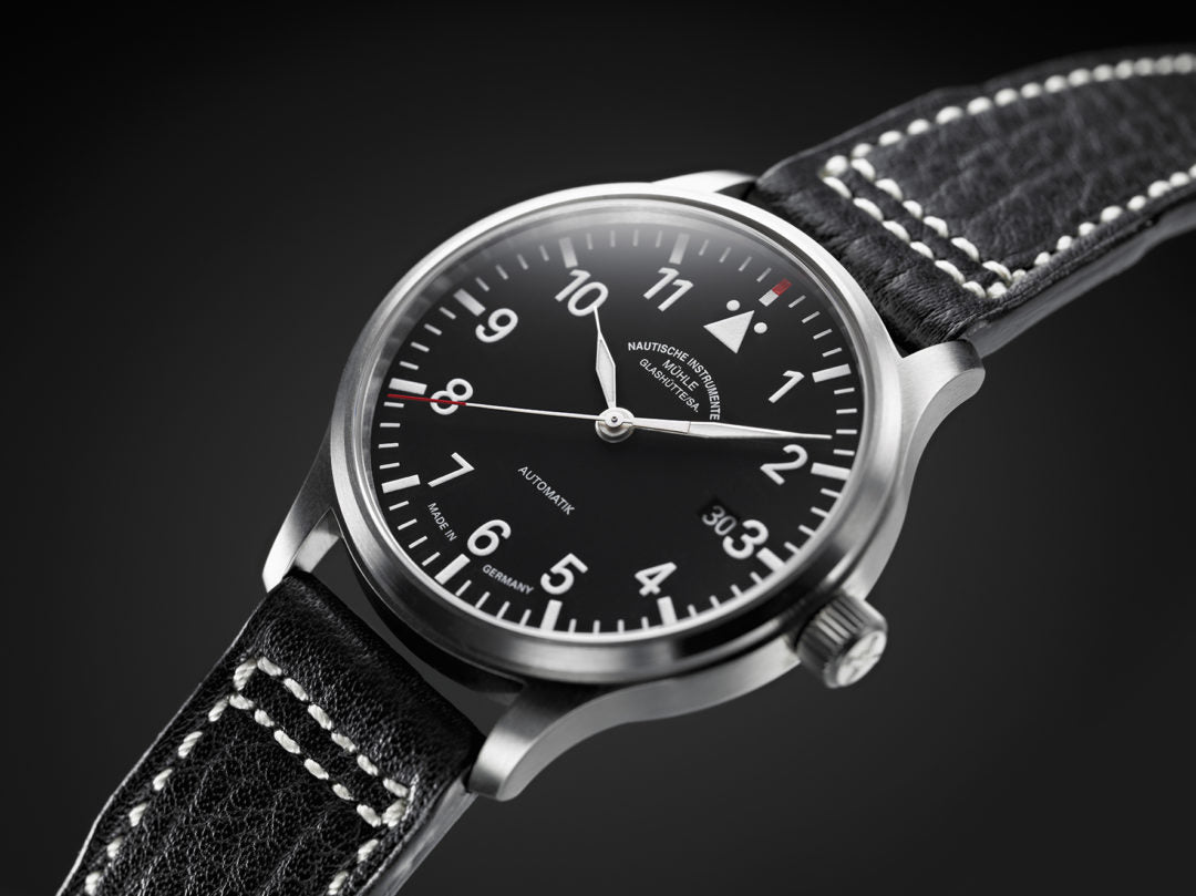 Muehle Glashuette Watch Terrasport II M1-37-44-LB. Sporty and discreet: this sums up the Terrasport II. True to its instrument character, the focus of this watch is on an easy to read face and a precision mechanism. For this reason we equip the movement with the typical Muhle components above all with our woodpecker neck regulation. Moreover, the timepiece is a shining example of how a clear cut, unadorned time measuring instrument can captivate the beholder with some lovingly applied details. We have for example given the second hand a small luminous dot. This makes the uniform increments of the second hand visible even at night.