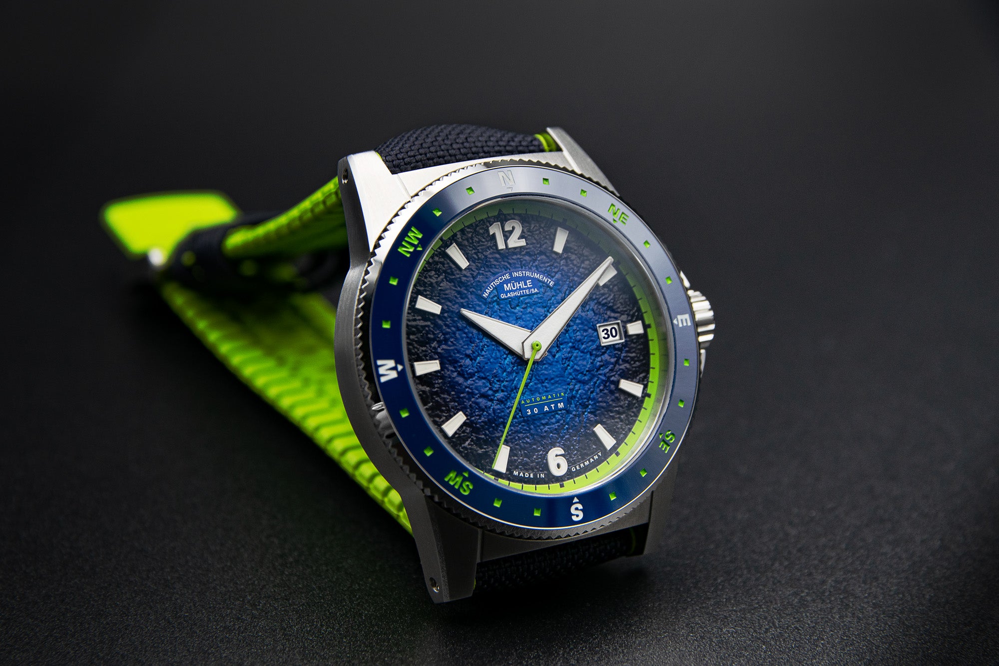 Muhle Glashutte Watch Sportivo Compass Date M1-52-22-LK. The Sportivo Compass Date is all about varied outdoor adventures. With its bidirectional rotating compass bezel, the new Mühle sports watch is ideal for extended trekking tours. It also allows the direction of the compass to be determined when a flat battery makes navigation via smartphone impossible.