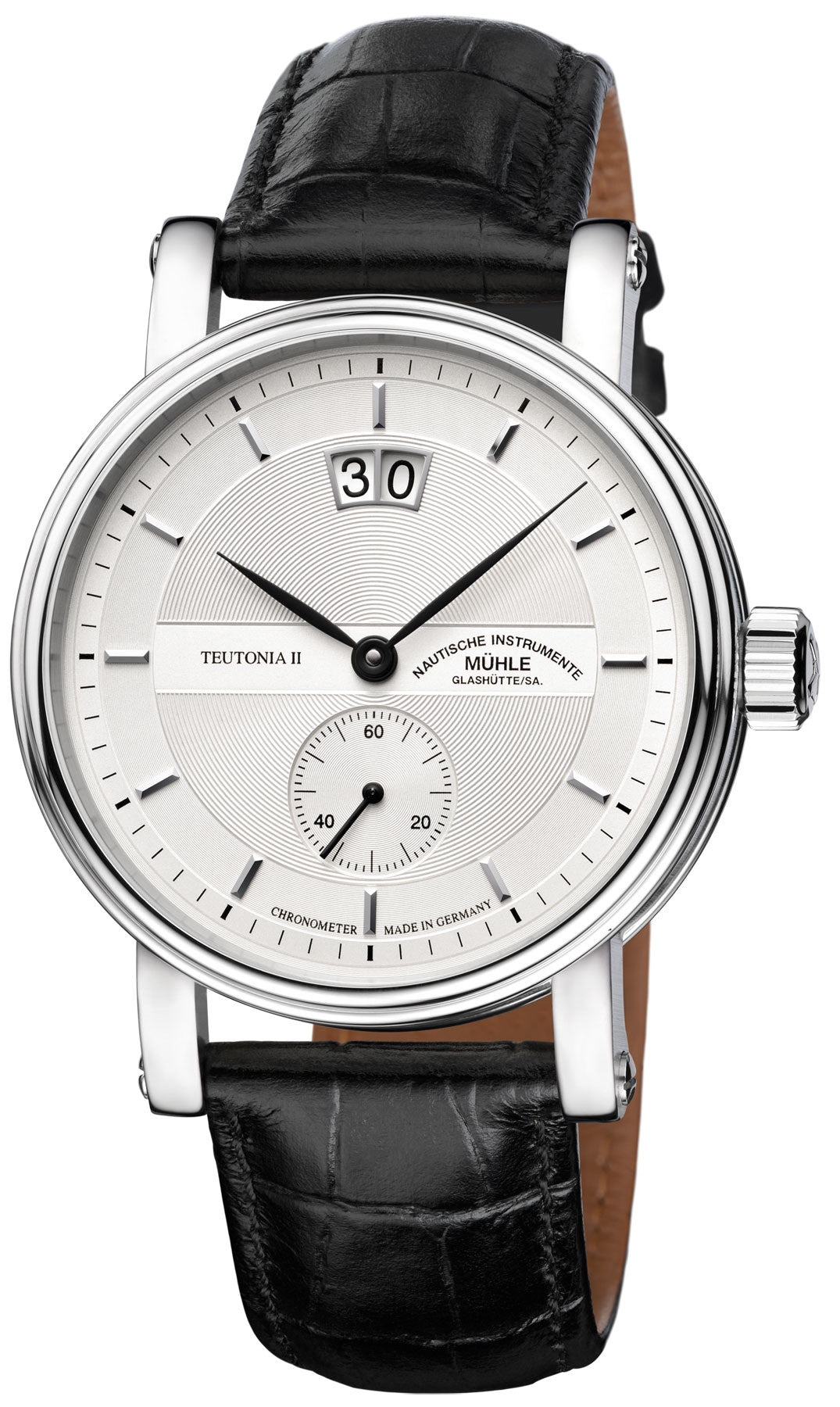 Muhle Glashutte Watch Teutonia II Grossdatum Chronometer Limited Edition. Functionality can be so lovely. With the Teutonia II Grossdatum Chronometer Muhle Glashutte presents a business timepiece that displays greatness in minute detail. As a novelty in the successful Teutonia family, it is available with dial variants in the colors silver and midnight blue. The limited edition of 250 pieces gives the timepiece an exclusive character. In addition to this, this timepiece has a certification according to the German Industrial Standard for wrist chronometers by the Glashutte observatory. With the Teutonia II Grossdatum Chronometer, high precision and the best readability meet classical elegance and a balanced understatement.