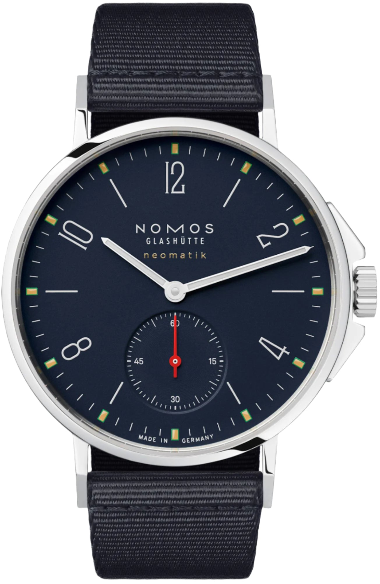 Nomos Glashutte Ahoi Neomatik Atlantic Steel Back Watch 566. Ahoi neomatik Atlantic a versatile automatic watch, equipped with the innovative caliber technology of the high precision neomatik DUW 3001 movement. The caliber, developed by NOMOS, measures just 3.2 millimeters in height the same as nine stacked postage stamps making it remarkably slender. The time is kept by the proprietary escapement, the famous NOMOS swing system. With a case diameter of 36 millimeters, Ahoi neomatik Atlantic is the smallest of the Ahoi Atlantic edition models. The watch is waterproof up to 20 atm.