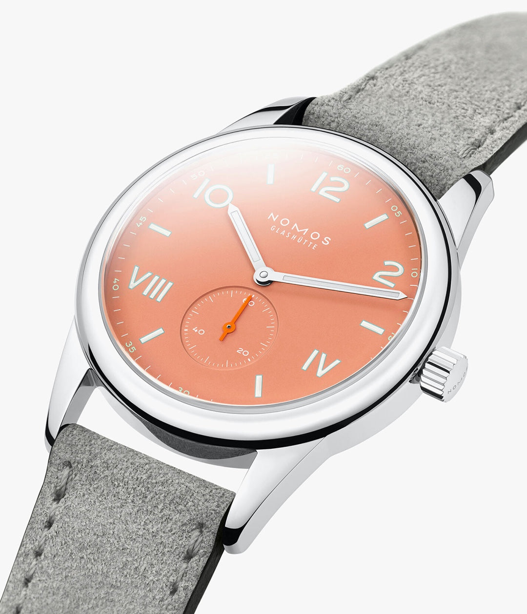 Nomos Glashutte Club Campus 38 Cream Coral Sapphire Crystal Watch 725.GB. Whether it’s high school SATs or college exams, Club Campus is a watch for life’s milestones, especially during challenging times like these. With the dial in a shade of cool, unassuming gray, Club Campus is celebrating all the academic success that didn’t get the recognition it deserved in 2020 and 2021. The personalized engraving on the stainless steel case back is available free of charge it makes Club Campus a graduation gift that lasts a lifetime.