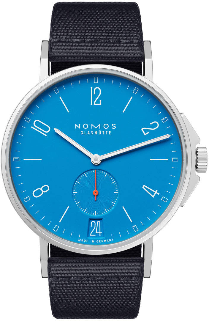 Nomos Glashutte Watch Ahoi Datum Signalblau Sapphire Crystal