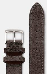 - Anthracite velour leather strap with steel winged clasp
