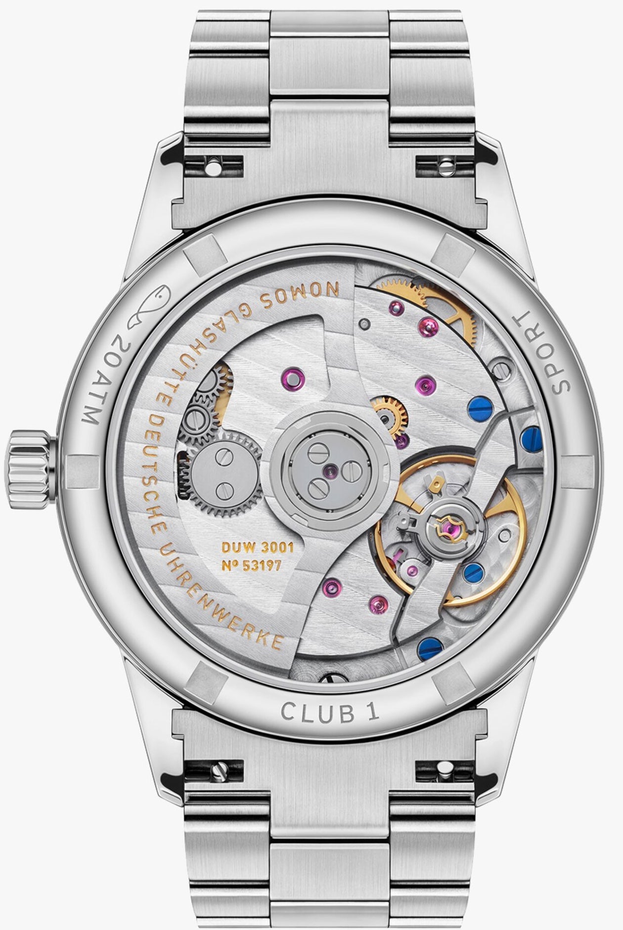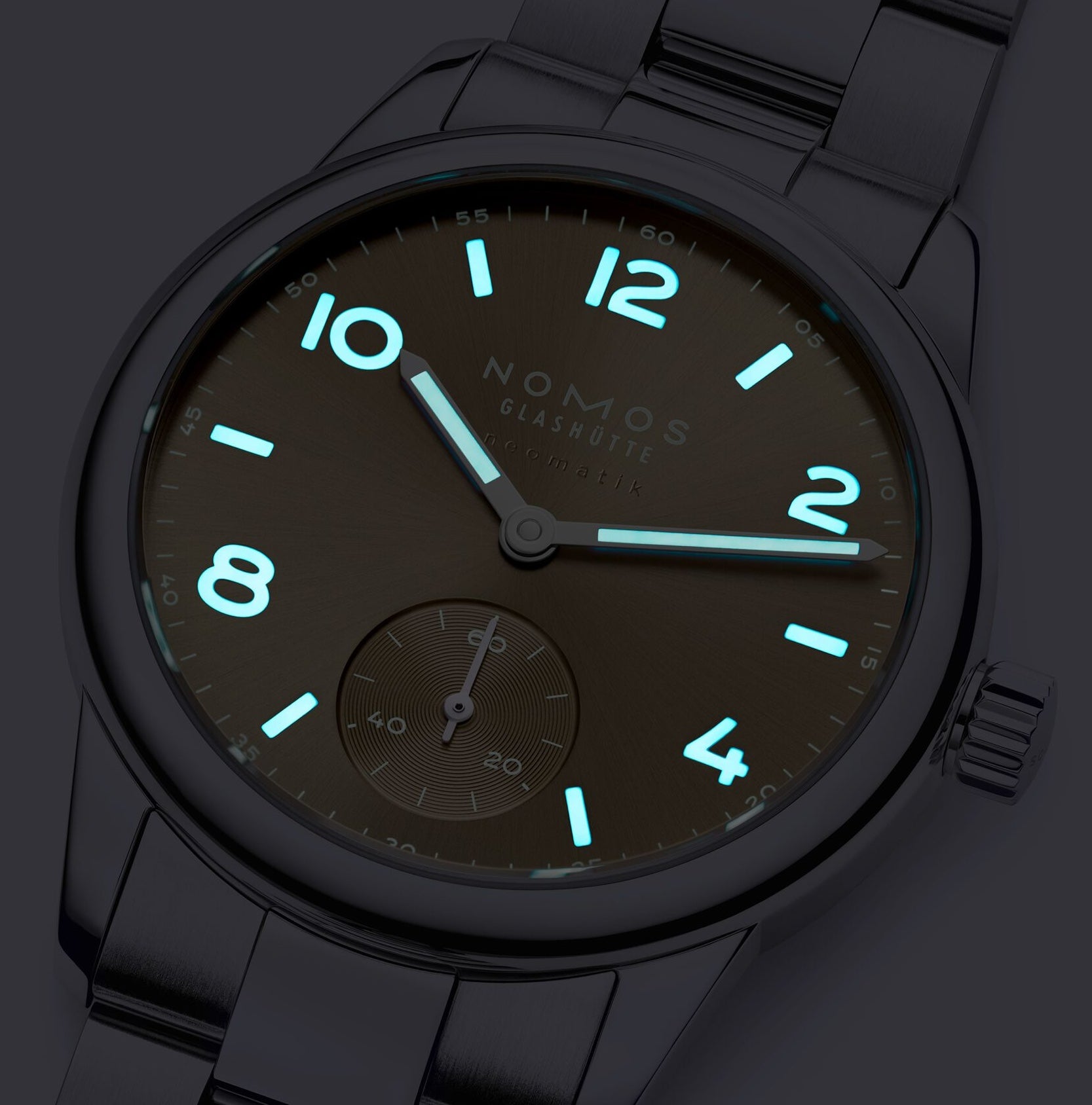 Nomos Glashutte Watch Club Sport Neomatik 34 Gold Sapphire Glass 755. This two-tone watch combines stainless steel and yellow gold in a feminine, modern way. While it is elegant enough for formal occasions, Club Sport also comes equipped with many practical features. Automatic winding, Superluminova on the hands and hour markers, and a water resistance of 20 atm are just few of them. The finishing touch is an integrated bracelet, which has been redesigned to fit this watch.