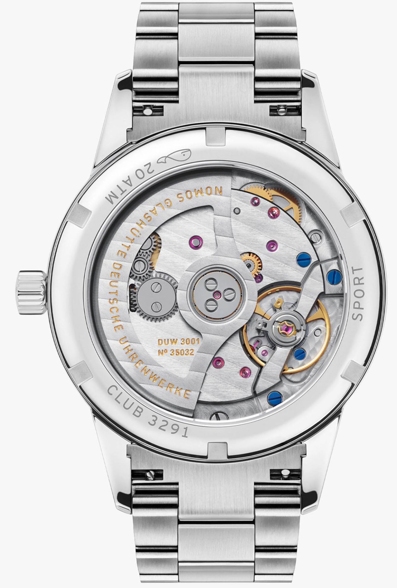 Nomos Glashutte Watch Club Sport Neomatik Petrol Sapphire Crystal 746. Club Sport neomatik in petrol green has a case diameter of 37 millimeters—the automatic watch with elaborate sunburst finish dazzles on any wrist. It accompanies you through busy weekdays with its motivating sportiness. This high-performance model is powered by DUW 3001, the innovative caliber from NOMOS Glashütte. The movement developed and manufactured by NOMOS is just 3.2 millimeters in height and equipped with the NOMOS swing system for optimum accuracy. Those who want to lose no time between working at the desk and jumping into the pool are in good hands with this watch as Club Sport neomatik petrol is water resistant to 20 atm and stays put on your wrist while swimming.