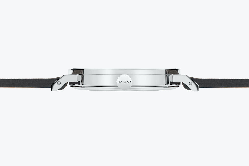 Nomos Glashutte Watch Tangente 38 Midnight Blue Sapphire Glass Back 167. Dress code, elegant. The classic Nomos Glashutte watches model Tangente is available in two hand wound versions with dials in a festive shade of midnight blue. Silver accents add festive sparkle to Tangente 38 midnight blue. An elegant contrast, the dark velour leather strap.