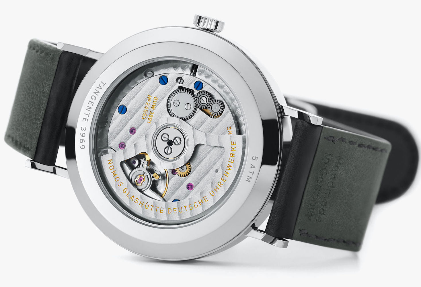Nomos Glashutte Watch Tangente Neomatik 39 Platinum Grey Sapphire Crystal 144. With Tangente neomatik 39 platinum gray, NOMOS Glashutte has created an elegant automatic watch, full of technical ingenuity of the highest quality. With a movement height of just 3.2mm, its neomatik caliber DUW 3001 sits perfectly into the slender steel case. The bidirectional winding rotor captures kinetic energy and stops when fully wound, protecting the mainspring of this enduring timepiece. The NOMOS swing system ensures the highest level of accuracy. The refined surfaces of the movement are lavishly decorated. The platinum gray on the dial underscores the value of this watch.