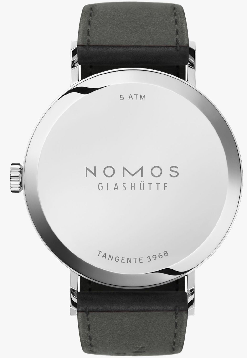 Nomos Glashutte Watch Tangente Neomatik 39 Steel Back 149. For those who value straightforwardness as much as precision: Tangente neomatik 39 is a stylish accompaniment to the working day. The tempered blue hands on the white silver-plated dial look great whether with a suit or smart casual attire.