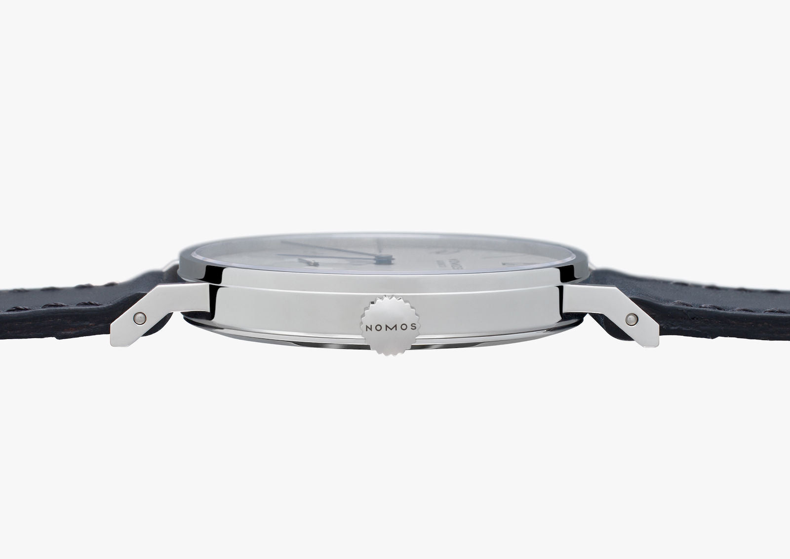 Nomos Glashutte Watch Tangente Neomatik Nachtblau Sapphire Crystal 177. The archetypal Nomos Glashutte watch, unmistakably so. And yet entirely new here, as some would say, the squaring of the circle. After all, ticking within is the super slender DUW 3001 caliber, making Tangente an automatic timepiece while retaining its fine proportions and refined elegance.