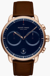 Nordgreen Watch Pioneer PI42RGLEDBNA. Nordgreen is a typical Danish surname, combined from two words Nord and Green. The Nord is characteristic of our Nordic identity. The Green embodies our commitment to our environment. Nordgreens vision is to pioneer the next wave of responsible Danish design, and the mission is to innovate and market responsible Danish design and lifestyle to the world.