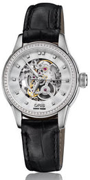 Oris Watch Artelier Lady Skeleton. A watch with inner beauty This Oris timepiece is a beauty. The extra large case opening permits an excellent view of the skeleton movement, and a fascinating opening into the world of mechanics. And the facing is brillianty enriched with 72 diamonds.