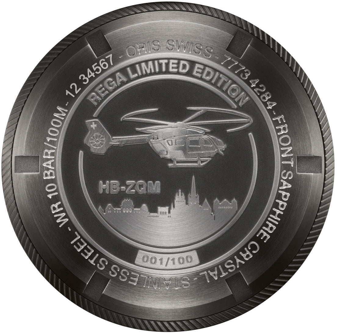 - Specially engraved caseback bearing an image of the Rega Airbus H145 HB ZQM aircraft
