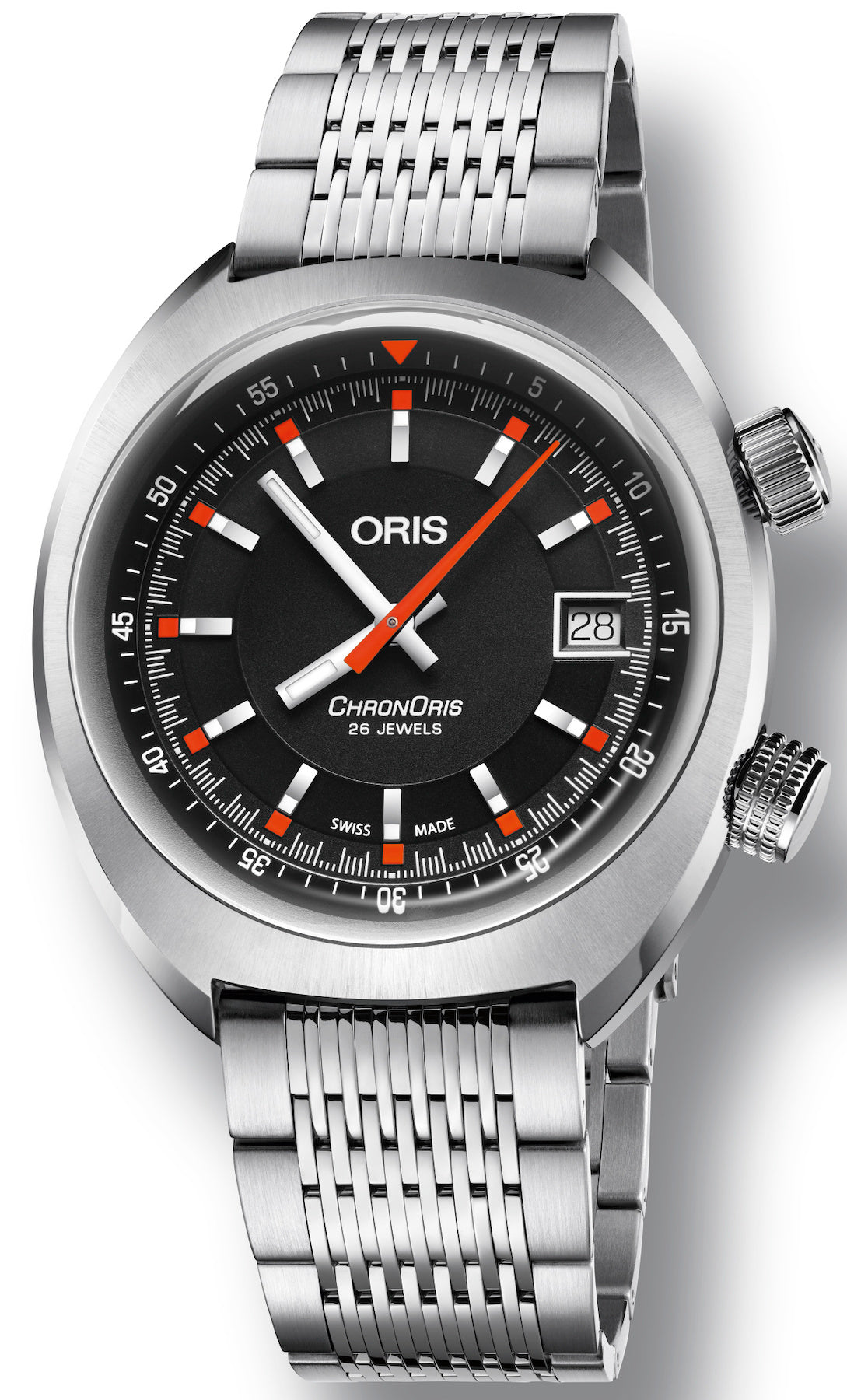 Inspired by the experimental era of the 1970’s, this Oris Chronoris watch takes its design directly from the past, back to a time when Oris invented their very first Chronoris watch. The Oris Chronoris watch collection was the brand’s first ever range of chronographs that became a tribute to the world of motorsport. This Oris Chronoris Date watch with its streamlined case, bold orange accents and multi-toned dial bring to life both the sporty and retro heritage of the Swiss watch manufacturer.