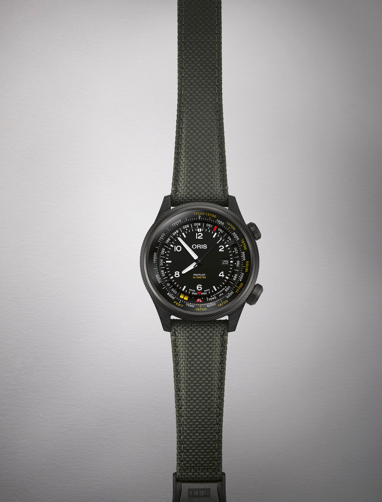 Oris Watch ProPilot Altimeter Feet 01 793 7775 8734-Set. Oris returns to the worlds first and only automatic mechanical watch with a mechanical altimeter, adding elevated performance and an innovative carbon fibre composite case.