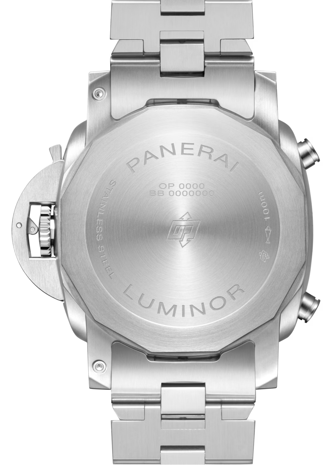 As the Panerai narrative unfolds, innovative watch designs like this Luminor Chrono watch reference PAM01548 continue to reinvent the codes of watch wearing. This strikingly bold dive watch design boasts the brand’s iconic cushion shaped case and crown protecting bridge. The feature not only acts as a defining characteristic of the line, but serves a functional purpose too, safeguarding the crown from potential damage.