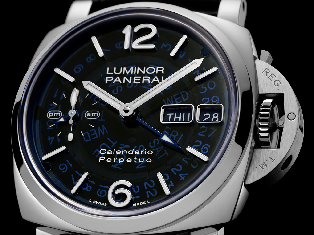 - Men’s 44mm Panerai Luminor Perpetual Calendar GMT Platinumtech reference PAM01575