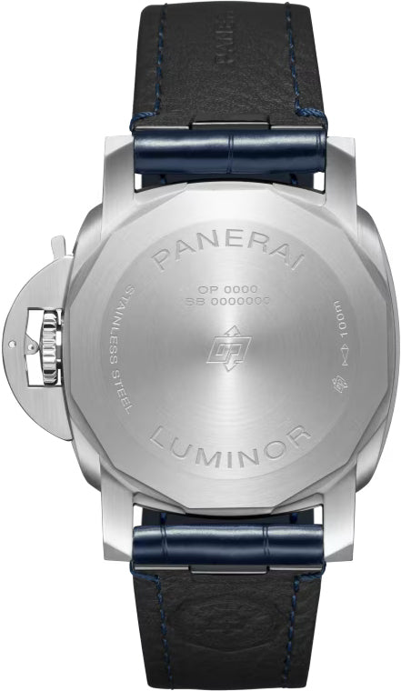 Carrying all the distinctive features of the popular Luminor watch from yesteryear, this Panerai Luminor Quaranta watch reference PAM01370 is powered by the automatic Calibre P.900 engine, which beats at 28,800 vibrations per hour and delivers a power reserve of three days. The mechanical movement also benefits from Incabloc technology to prevent it from becoming damaged by impact. The Panerai Luminor Quarranta, measuring a compact 40mm diameter, features a blue alligator leather strap to match the captivating blue nuances of the dial. It secures with a matching brushed steel buckle bearing the OP logo upon its surface.