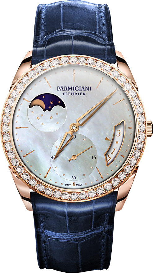Parmigiani Fleurier Watch Tonda 1950 Lune PFC284-1063300-HA3121. The Parmigiani Fleurier is refreshing the aesthetic of the Tonda 1950 Lune with a model for women. Its dial showcases the poetry of the lunar calendar complication with a new layout. Behind this harmony, it is easy to forget the sheer complexity required to create a complication on an ultra thin self winding movement. The Tonda 1950 Lune is both a technical and aesthetic tour de force.