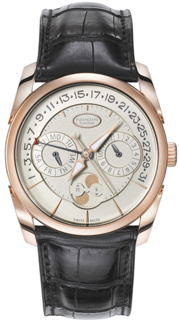 Parmigiani Fleurier Watch Tonda Quator PFC272-1002400-HA1241. The prestigious collection of movements entirely developed by the Parmigiani Fleurier manufacture was enriched by a Retrograde Annual Calendar. Whereas the date is automatically adjusted based on the number of days in the month, 30 or 31, the Tonda Quator works on the basis of 29 days for Feb, whether or not it is a leap year.