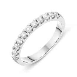 This classic platinum half eternity ring features 0.40cts of sparkling round brilliant cut diamonds allowing the maximum amount of light to enter the stones and provide a dazzling display of light and colour. Designed perfectly for everyday wear, this piece would make the perfect eternity or wedding ring to sit alongside other bands.