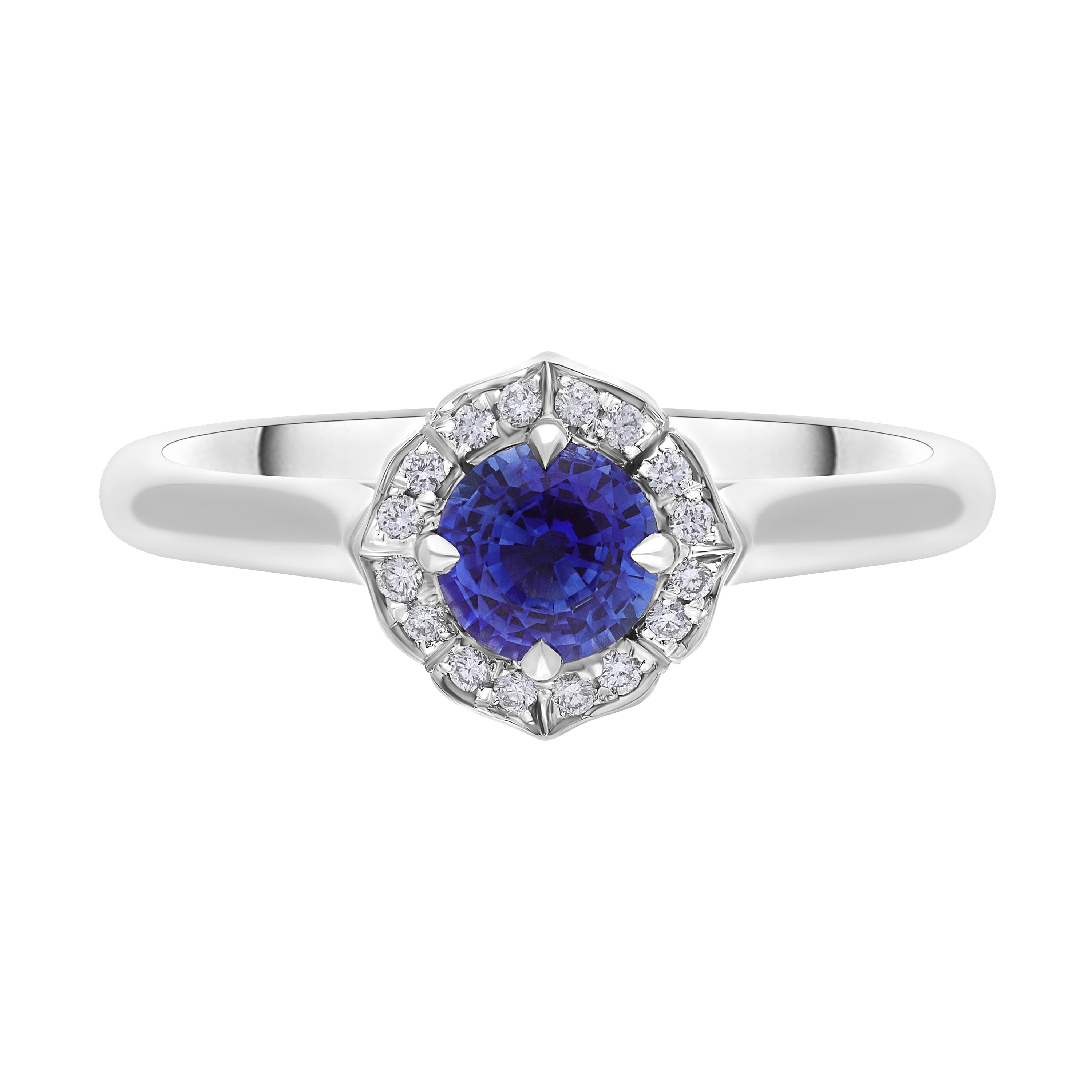 Platinum 0.61ct Sapphire 0.07ct Diamond Tudor Rose Cluster Ring, FEU-3015