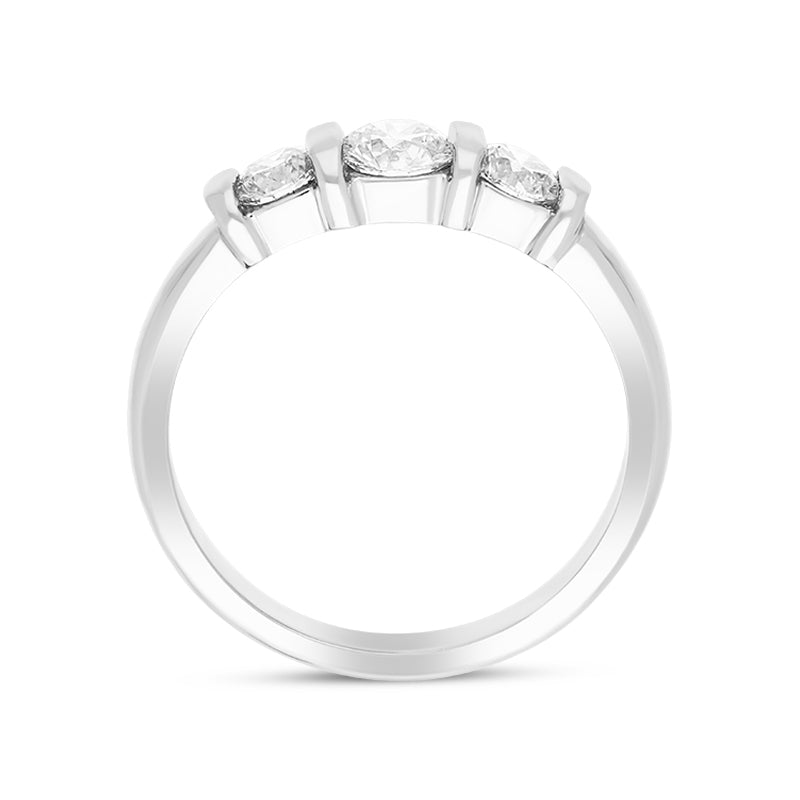 This stunning platinum ring features three bar set round brilliant cut diamonds (0.34ct, 0.41ct, total 0.75ct). The platinum band gives this beautiful ring a solid and substantial weight, making this a piece that will be treasured for generations to come.