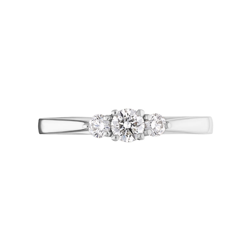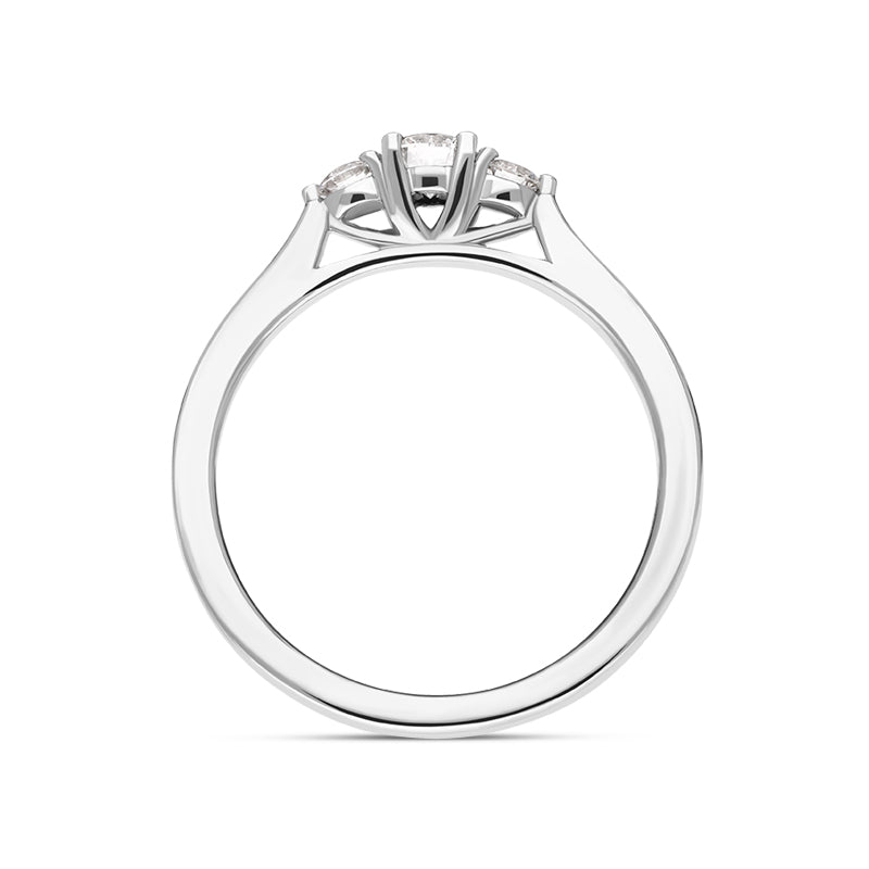 This stunning platinum ring features three round brilliant cut diamonds (0.36ct). The platinum band gives this beautiful ring a solid and substantial weight, making this a piece that will be treasured for generations to come.
