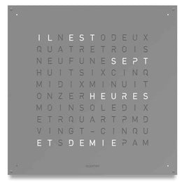 QLOCKTWO can be changed to any language or appearance in a matter of seconds. QLOCKTWO masters more than 20 languages. QLOCKTWO will be delivered in the chosen language. You only need another front cover, which is available as an accessory, to display the time in another colour or language. Please note that, due to technical reasons, a change of language is not possible for the Arabic language version.