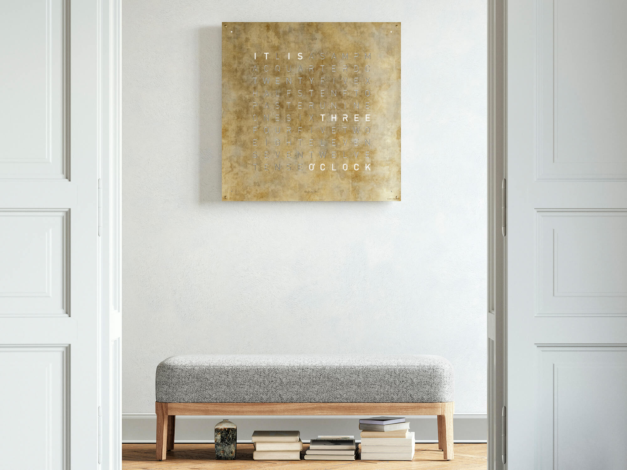 • VINTAGE COPPER - The QLOCKTWO EARTH 90 CREATOR’S EDITION VINTAGE COPPER, is a lively, unique surface. Inspired by the naturally patinated copper on roofs, sculptures, and coins. Delivered on a white clock body, the surface is fixed indelibly.