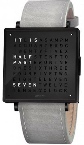 TIME IN WORDS ON YOUR WRIST. Life is busy enough. QLOCKTWO W takes the calming principle of displaying time in words and applies it to your wrist at the push of a button.