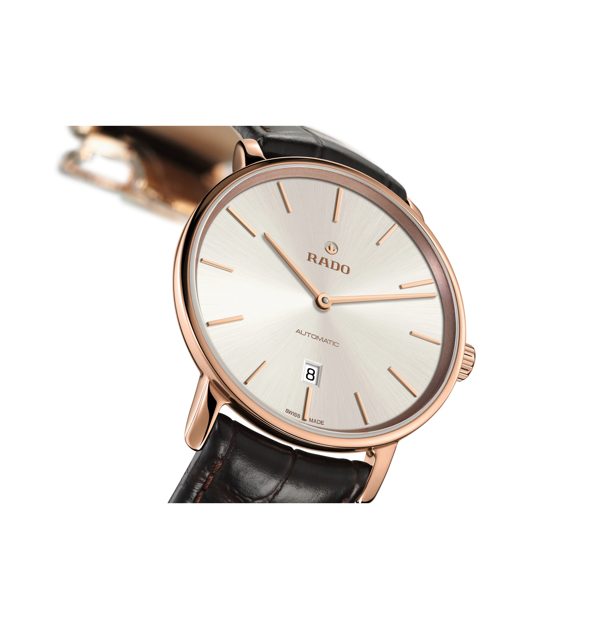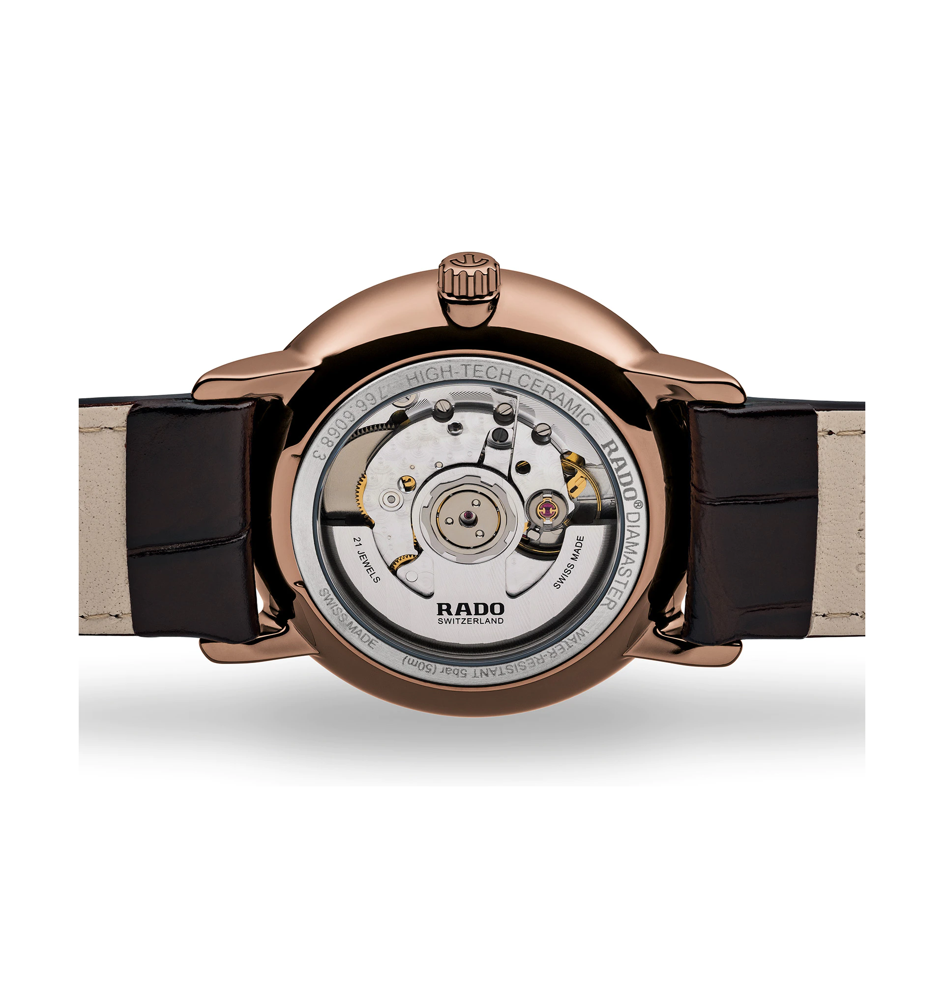 Since the beginning, Rado have achieved exceptional results in luxury watch manufacture using ceramic. Then in 2018, they launched what would become one of their most impressive patents to date: Ceramos. Launched within the Rado DiaMaster Ceramos collection, Ceramos delivers the best of both ceramic and metal alloy, delivering the same scratch resistance, lightness and hypoallergenic properties of ceramic with the radiance and durability of metal. This Rado DiaMaster Ceramos Automatic watch is a perfect example of their mastery, achieving everlasting shine and resistance through the sleek 40.3 millimetre rose gold-coloured Ceramos case.