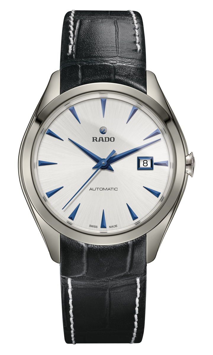 The Rado HyperChrome Automatic watch series is designed to look just as good with business attire as it does with a casual outfit or sports gear. The same can be said for this men’s ceramic watch thanks to its slender architecture, 50 metres water resistance and scratch resistant sapphire crystal glass. Beneath the glass sits a crisp white sunray finished dial detailed with bold dart-shaped indexes for the hours, matching blue sword-shaped hands for the hours, minutes and seconds and a blue boxed date window at 3 o’clock. The movement responsible for the keeping of these complications is the Rado calibre 763 based on the ETA C07.611 delivering an extended 80-hour power reserve.