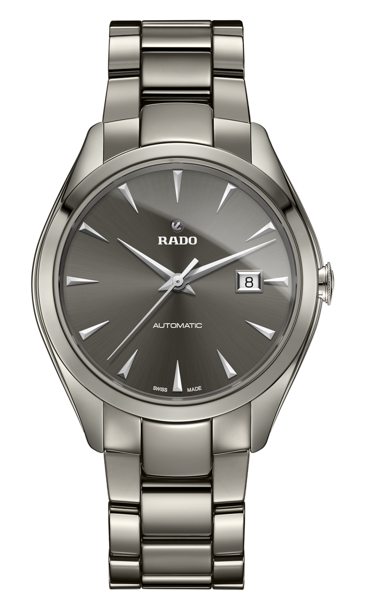 The Rado HyperChrome Automatic watch series is designed to look just as good with business attire as it does with a casual outfit or sports gear. The same can be said for this men’s ceramic watch thanks to its slender architecture, 50 metres water resistance and scratch resistant sapphire crystal glass. Beneath the glass sits a smooth anthracite sunray finished dial detailed with bold dart-shaped indexes for the hours, matching silvered sword-shaped hands for the hours, minutes and seconds and a polished boxed date window at 3 o’clock. The movement responsible for the keeping of these complications is the Rado calibre 763 based on the ETA C07.611 delivering an extended 80-hour power reserve.