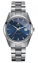 The deep blue dial is stunning thanks to its polished finish that seems to sparkle beneath the scratch resistant sapphire crystal glass that has been treated with an antireflective coating for easy readability. The silver hands, indices and date box at three o clock contrast beautifully against the dial while the matching stainless steel bracelet completes the luxurious look.