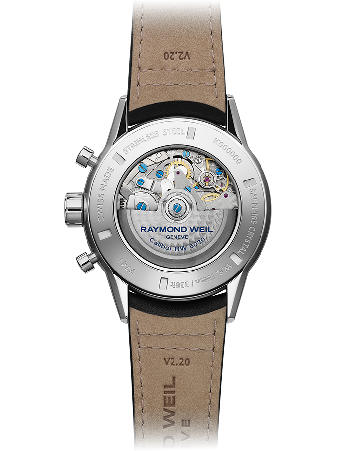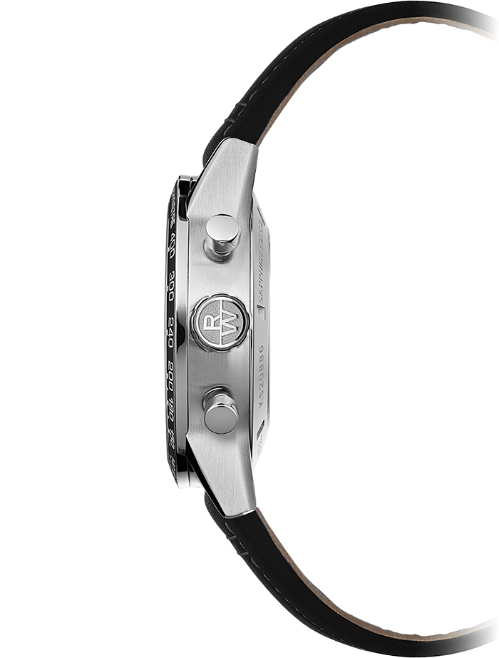At the heart of the freelancer tri-compax chronograph sits the Calibre RW5030. Visible through the exhibition case back, this automatic movement has a power reserve of 56 hours. This model is available in multiple colour and strap variations.