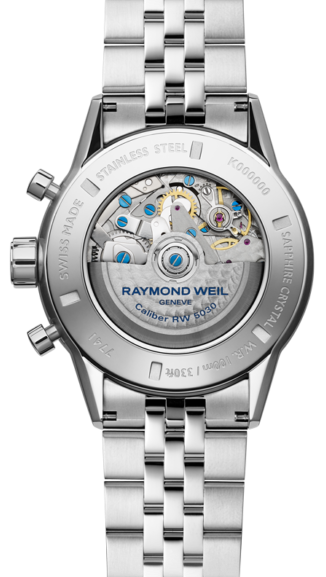 Raymond Weil Watch Freelancer Mens 7741-ST3-50021. The RAYMOND WEIL freelancer collection for him aligns the finest in Swiss watchmaking traditions and modern design. The freelancer design mixes classic and modest to create harmonious and unique timepieces. Constantly reinterpreting itself and free from all constraints, the freelancer conserves those elements which constitute its strengths. The freelancer collection for men comes in several versions, including a chronograph, bi-compax and skeleton dial. Our most diverse, unrestrained Swiss watch collections to date, there’s something unique for every modern man here.