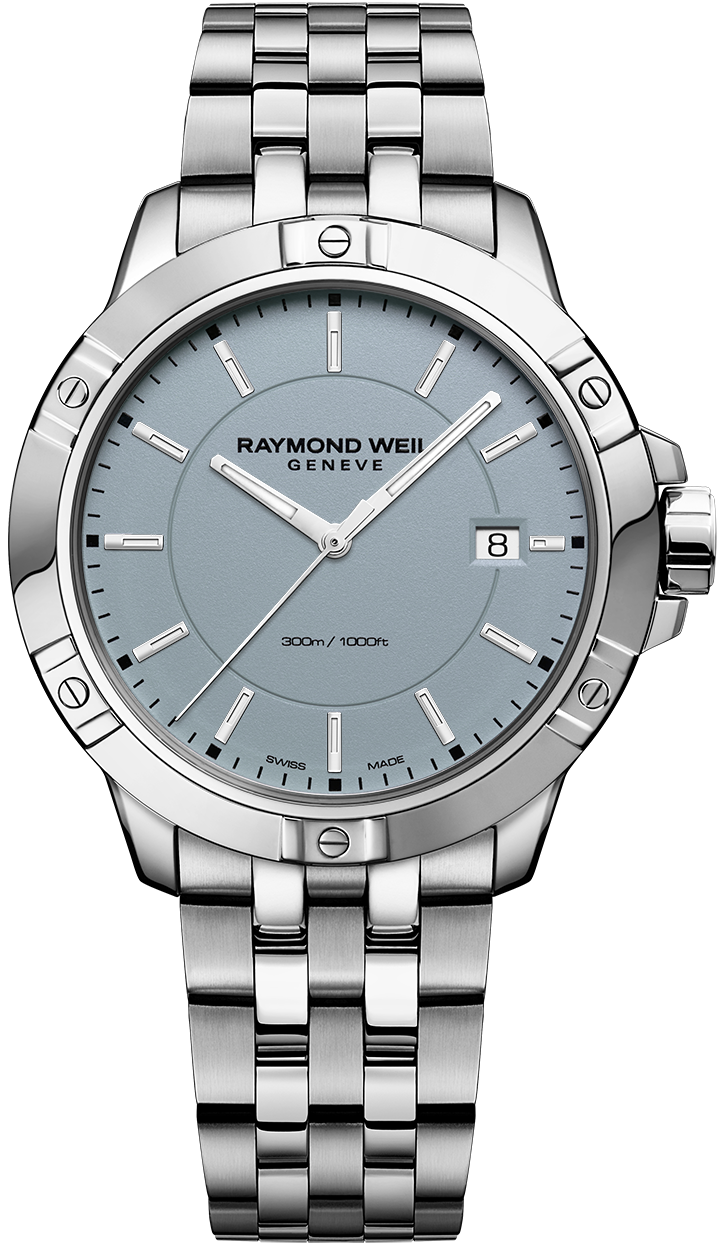Raymond Weil Watch Tango Mens 8160-ST-50031. The tango collection embodies the passion that RAYMOND WEIL, the Swiss watchmaker, puts into achieving timepieces of both aesthetic sensuality of design and rhythmic perfection. With its refined and modern design, this contemporary collection appeals to both men and women. Featuring a quartz movement, the gents’ timepieces boast a sober and refined style while the ladies’ models are graced with mother of pearl and diamonds. Distinctive style with a balance of proportions, the tango watch has a distinguishing signature bezel featuring six decorative screws. Functionality marries with sensual design, making this a watch worn to suit any occasion.