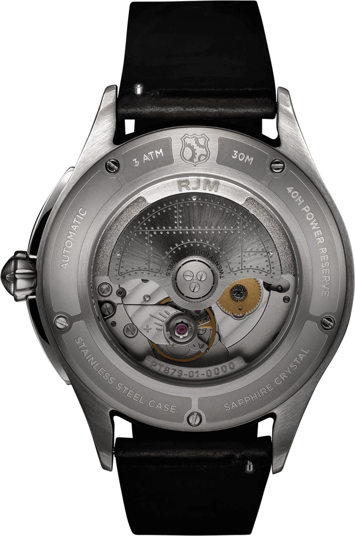 REC Watches RJM-01. The REC Watches RJM contains a piece of world history in the form of untreated aluminum cut directly from the PT879 MK IX Spitfire aircraft. It is the worlds first mechanical timepiece that combines authentic salvaged Spitfire aircraft material with both the design of the aircraft itself, and the watches worn by RAF pilots of that era.