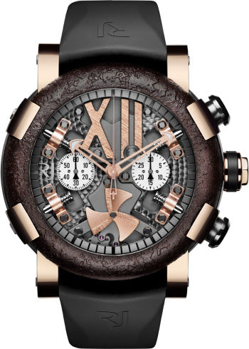 RJ Watches Steampunk Gold Rusted Metal RJ.T.CH.SP.003.01. RJ Watches take their inspiration from raw elements such as the sea, the earth, the air and daring collaborations. Combining aesthetical elements from the industrial age machinery and post modernism times, the Steampunk collection features rust and rough finishes.